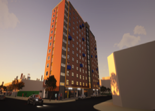 This project is located on a relatively small site in the Johannesburg inner city. It will provide 108 much needed affordable housing units in a 13 storey tower. The project aims to contribute to the urban regeneration of downtown Johannesburg which has seen a decline in recent years.