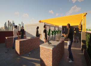 Four small retial outlests are located at street level with the residential units located on the 12 floors above. Recreation space, in the form of a play-ground and braai / lounge, is located on the roof level where reiidents can enjoy panoramic views of the city.