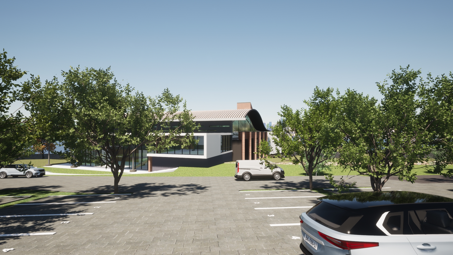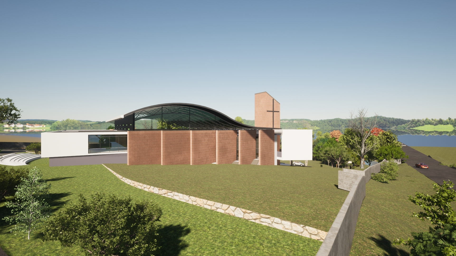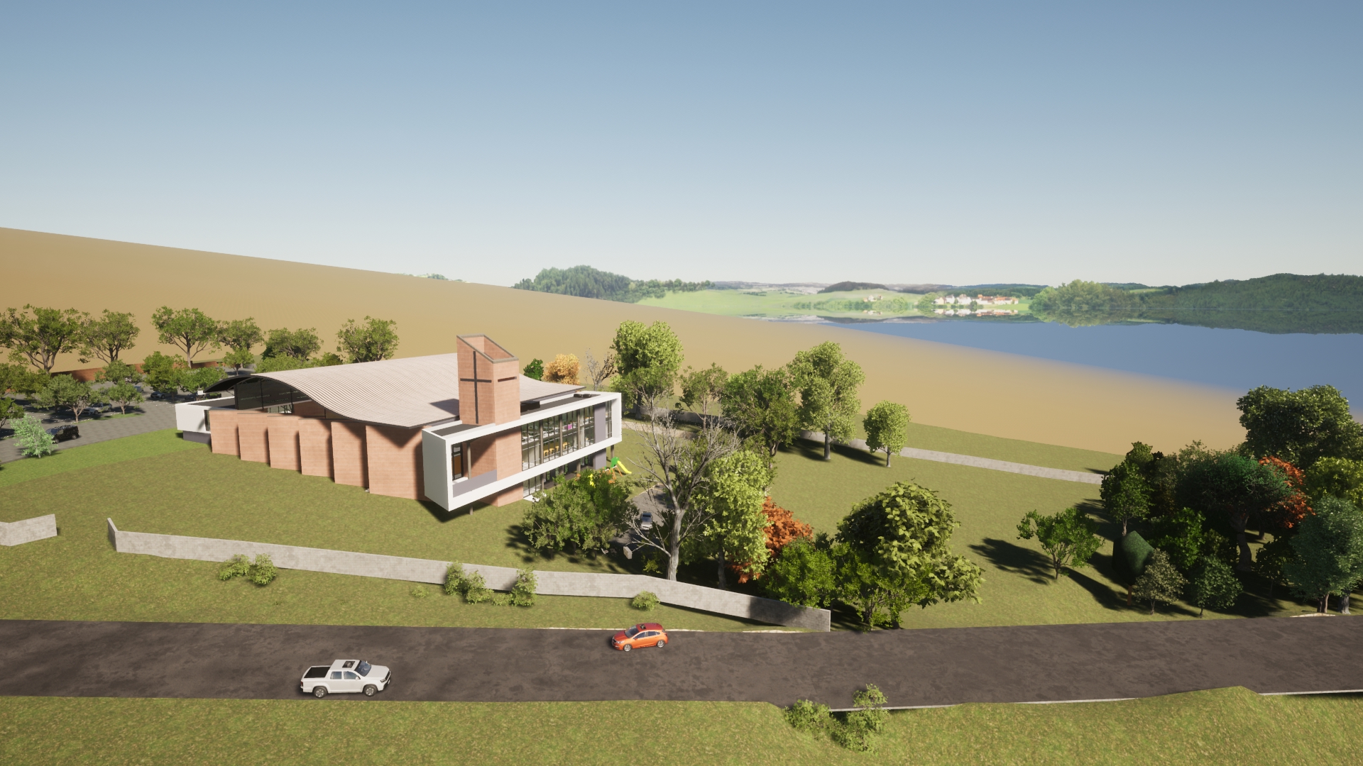 Our design features a sweeping barrel-vaulted roof, a nod to warehouse architecture, while exposed steel trusses and brick piers emphasise structural expression. Expansive glass façades invite natural light, fostering a connection between the congregation and the surrounding landscape.