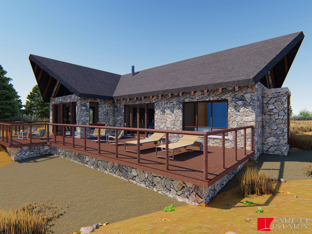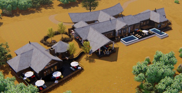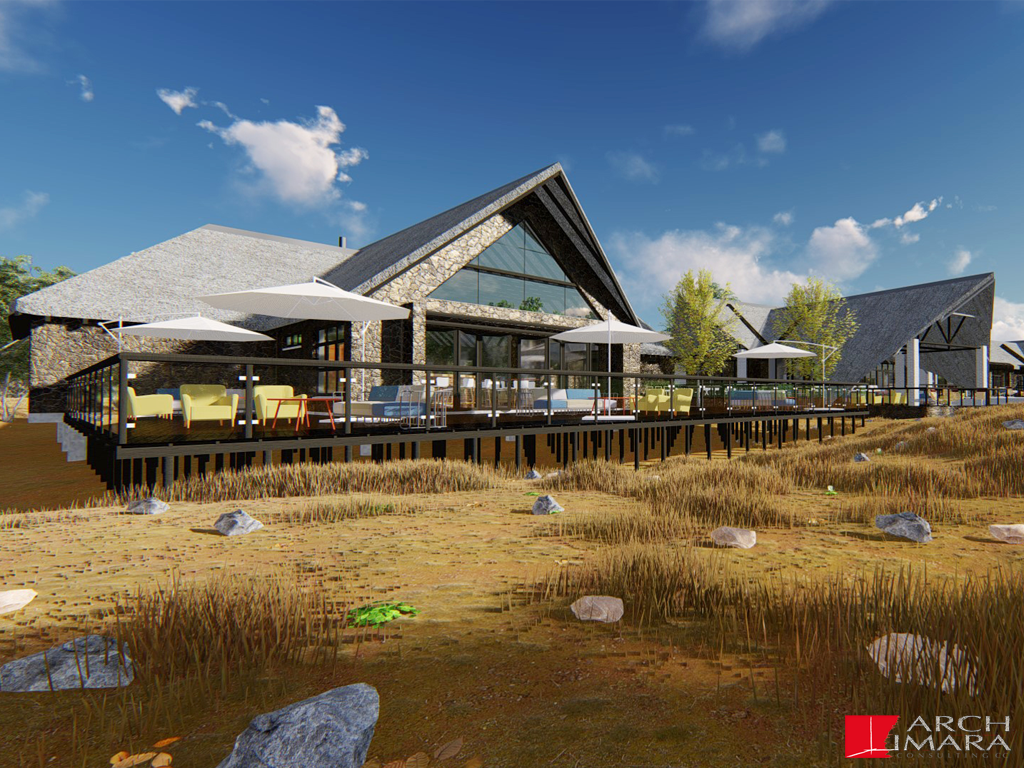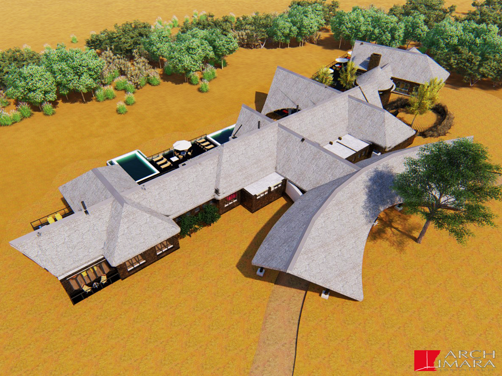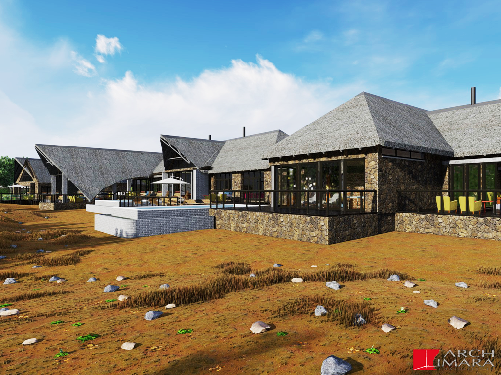 The Nkanyi Lodge site is located in the Waterberg Biosphere Reserve in Limpopo Province, about than 100km from Lephalale. The site straddles a river waterfront in a tranquil pristine setting. There are 12 lodges & a spa sited along a 600m stretch of waterfront ensuring each lodge takes maximum advantage of the beautiful natural setting. The Main Lodge, which houses the reception, restaurant, lounges, bar & wine cellar & conference facilities is sited centrally between the residential lodges. The architectural styling of the buildings is a rustic modern combination of traditional thatch roofs, exposed timber structure and stone cladding.