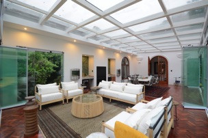 Our concept juxtaposes a modern steel framed glass box with the traditional brick and mortar existing house. The new Patio houses a lounge and dining area complete with a braai and wood burning fire place. Frameless stacking glass doors and double glazed roof create a sheltered outdoor experience with panoramic views.