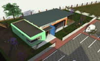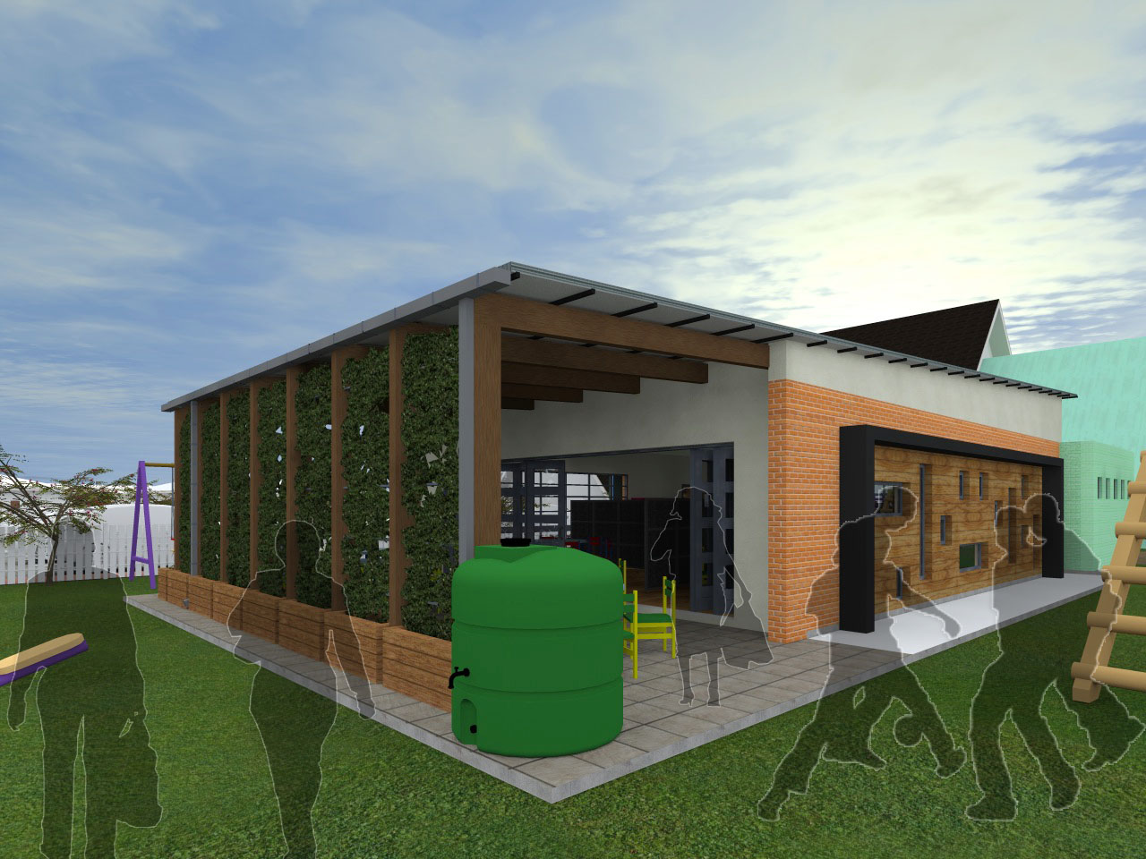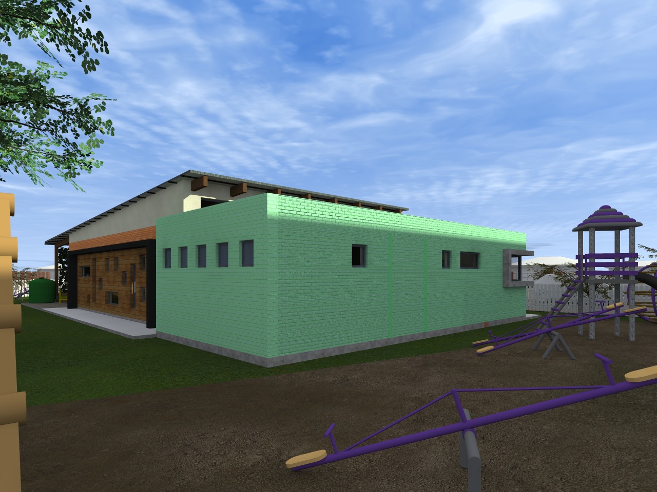 The design of the building utilises simple rectilinear forms maximising usable space. The facades of the main building are face brick while the ablutions block is bag washed and painted brickwork. The north facade is generously glazed while the south has fewer randomly placed windows. A mono pitch roof is utilised for its simplicity and rain water harvesting potential.