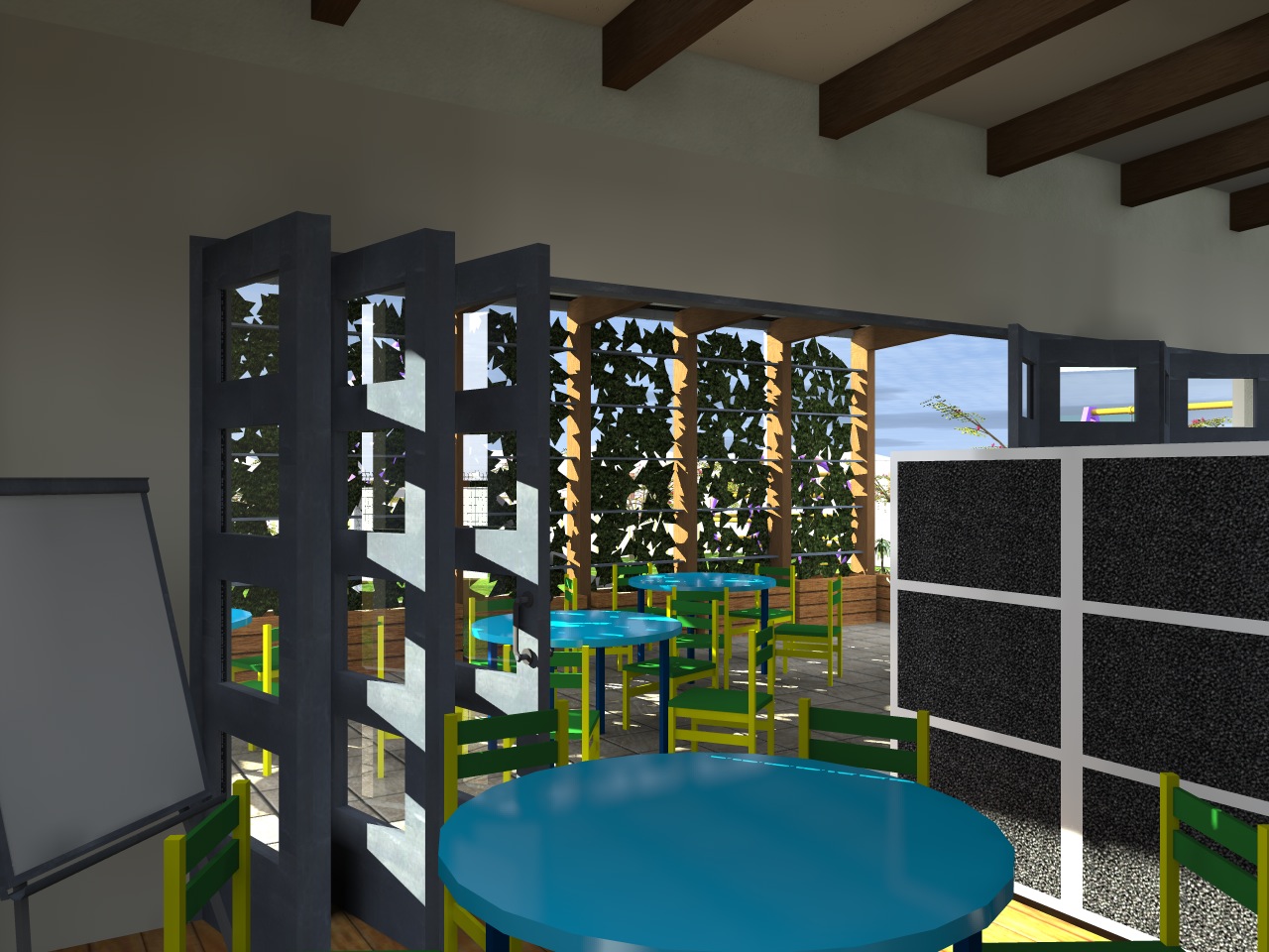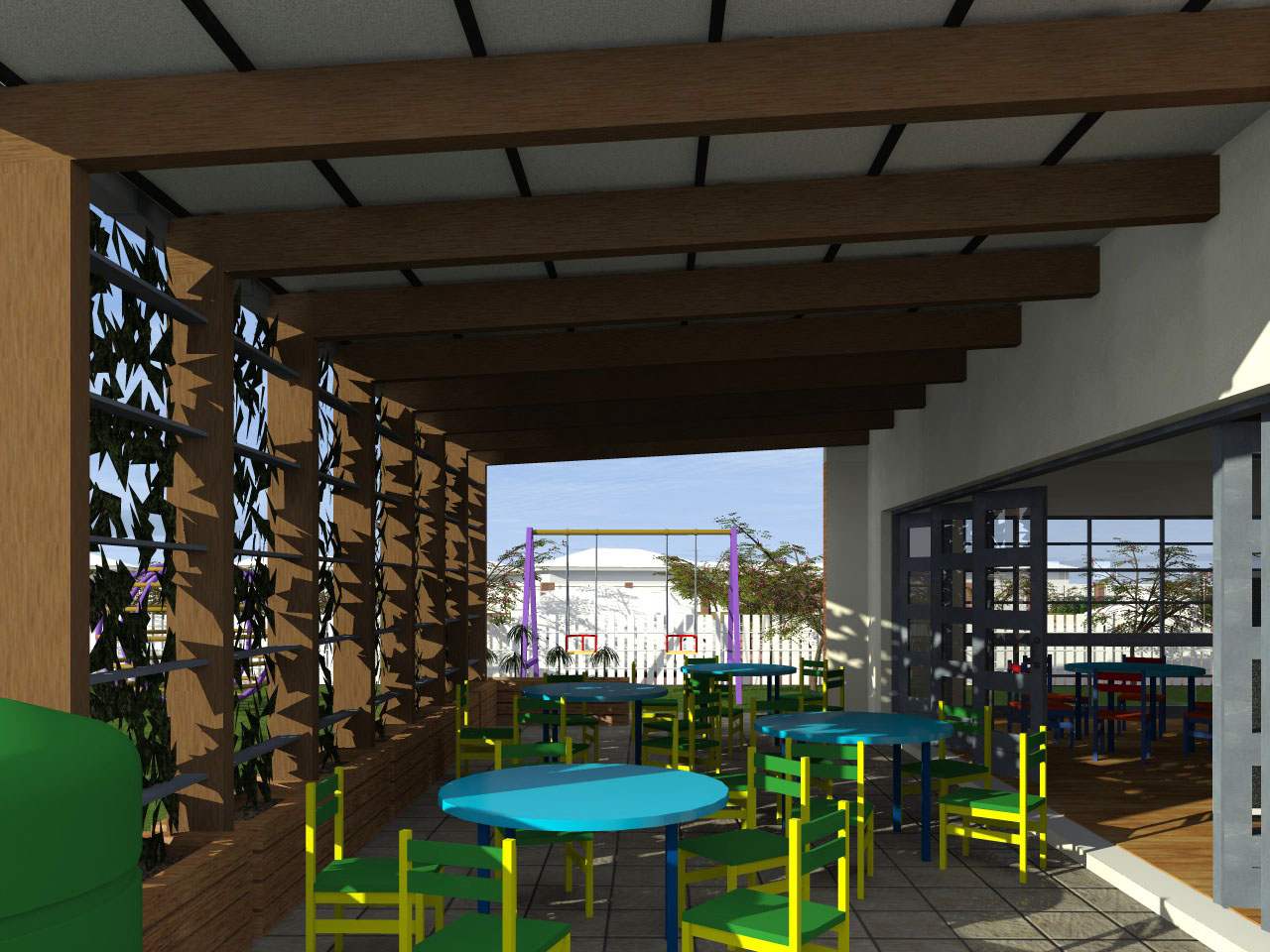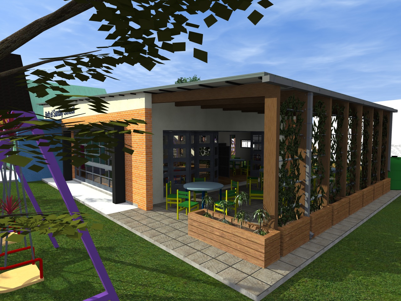 Our proposal seeks to create one cohesive complex with the church and the Sunday school facility. The hall area is an open flexible space which can be divided into various smaller spaces as required. The ablutions block is located on the east, keeping it close to existing plumbing services of the church. The hall opens out onto a covered patio which serves as an extension to the hall. The covered patio is screened on the west through the use of a living wall.
